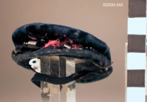 Hoedje van donkerblauw fluweel met zwarte kraaltjes