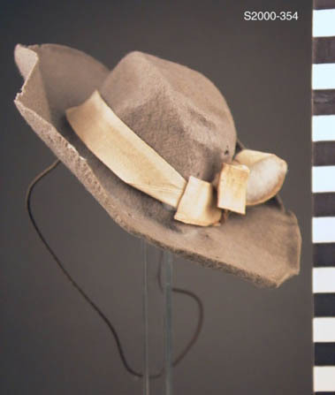 Hoed van grijs vilt met gleuf en brede rand