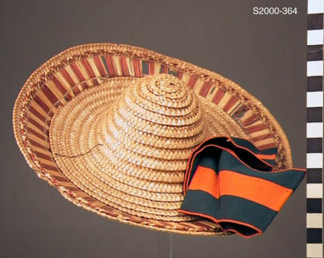 Strohoed van bandstro met strik van rood-zwart ribslint