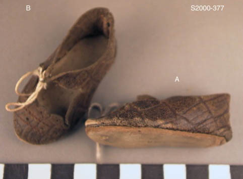Paar bruin leren schoenen met ingedrukte onregelmatige lijnen. Sluiting:
