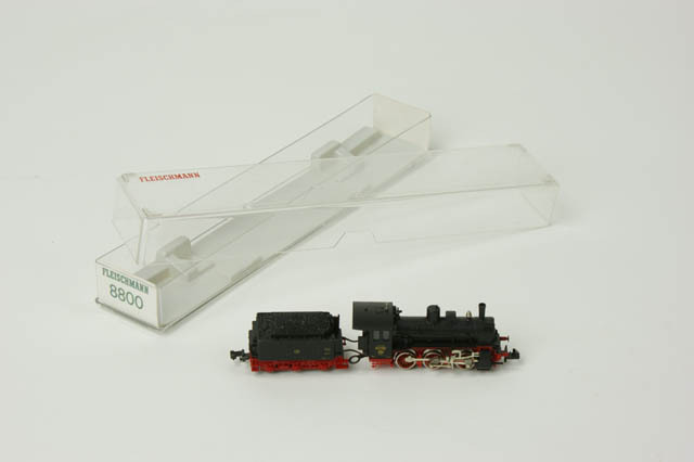 Locomotief met daaraan vast een tender. In originele verpakking. Spoorbreedte piccolo.