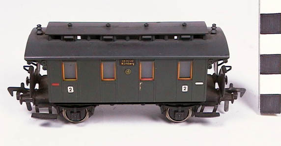 Locomotief en 3 personen- en 2 goederen wagons, spoor H0