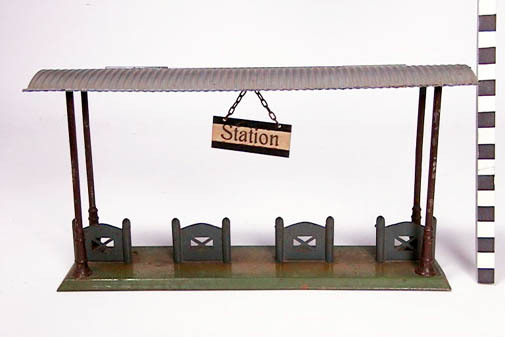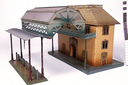 Station en perron met daartussen een glazen overkapping, spoor 1?