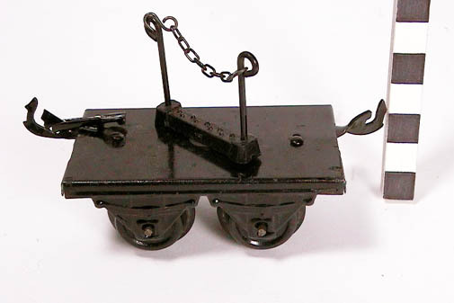 Locomotief met 2 plattewagons, kantelwagon, 2 openwagons, tankwagon en 2 sleutels