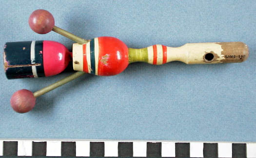 Figuur en als je die schud beweegt zijn hoofd tegen zijn armen en komt en geluid uit
