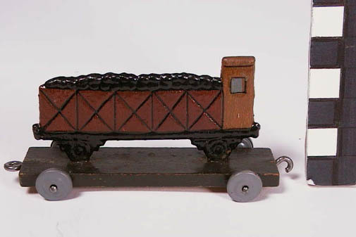 Twee locomotieven, 6 wagons, 2 seinpalen, 2 slagbomen, 5 persoenen, 2 lantaarnpalen, 2 borden halt, benzine pomp, informatiezuil, en een klok.