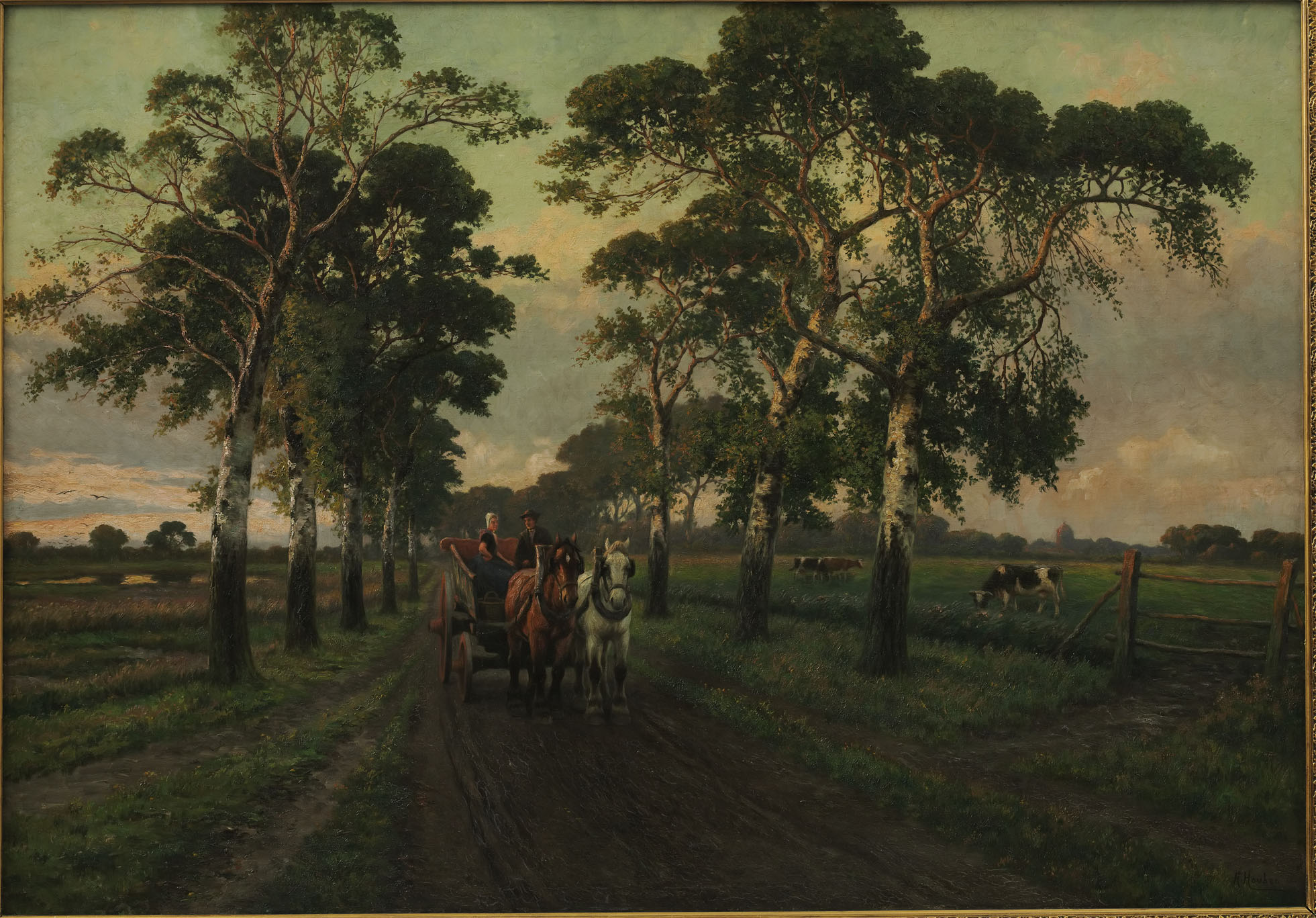 Zeeuws boerenpaar op wagen - z.j., olieverf/doek, 105,5 x 151,5 cm, gesigneerd r.o.: H. Houben