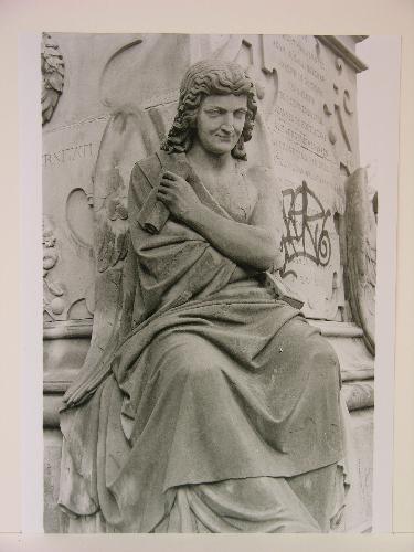 Foto van het monument voor Joost van den Vondel in het Amsterdamse Vondelpark, vervaardigd in 1867 door Louis Royer (beeld) en P.J.H. Cuypers (voetstuk)