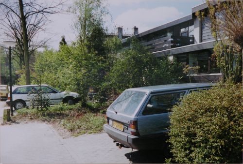 Woningbouwwijk in Geldrop, straatzijde woningen in nieuwbouwwijk, kleurenfoto/papier, 127 x 183 mm Woningbouwwijk in Geldrop, straatzijde woningen in nieuwbouwwijk, kleurenfoto/papier, 12.7 x 18.3 cm