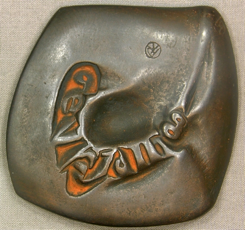 Penning 50 jaar bevrijding, Vereniging voor Penningkunst. Penning 1995 50-jaar bevrijding Ontwerp en modelés: Hanneke Mols-van Gool Uitvoering: gegoten penning, brons, ruitvoermig 95 x 100 x 13 mm. Binder bronsbeeldieterij B.V. te Haarlem. De ene zijde van de penning is horizontaal verdeeld in twee vlakken. Het bovenvlak is schijnbaar leeg tot 1945, herinneringen aan oorlog ...