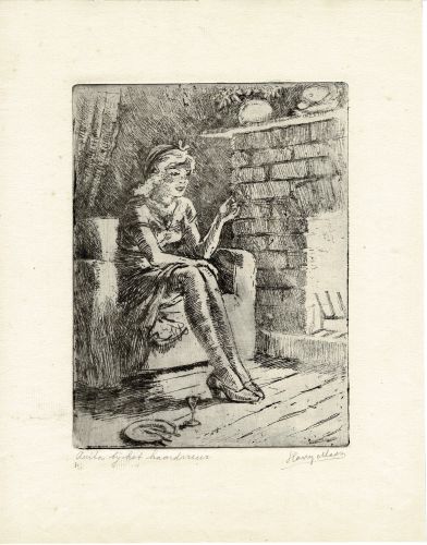 Anita bij het haardvuur – z.j., ets/papier, 195 x 147 mm, gesigneerd onder plaat in potlood r.o.: Harry Maas, geannoteerd onder plaat in potlood l.o.: Anita bij het haardvuur, HN-nr M1-077