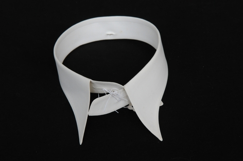 Stijve boord, materiaal: gesteven katoen, kleur: wit, opschrift binnezijde '3.tor.E - 167147 7 37'