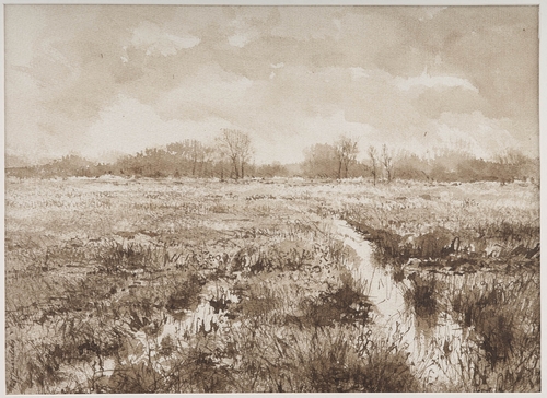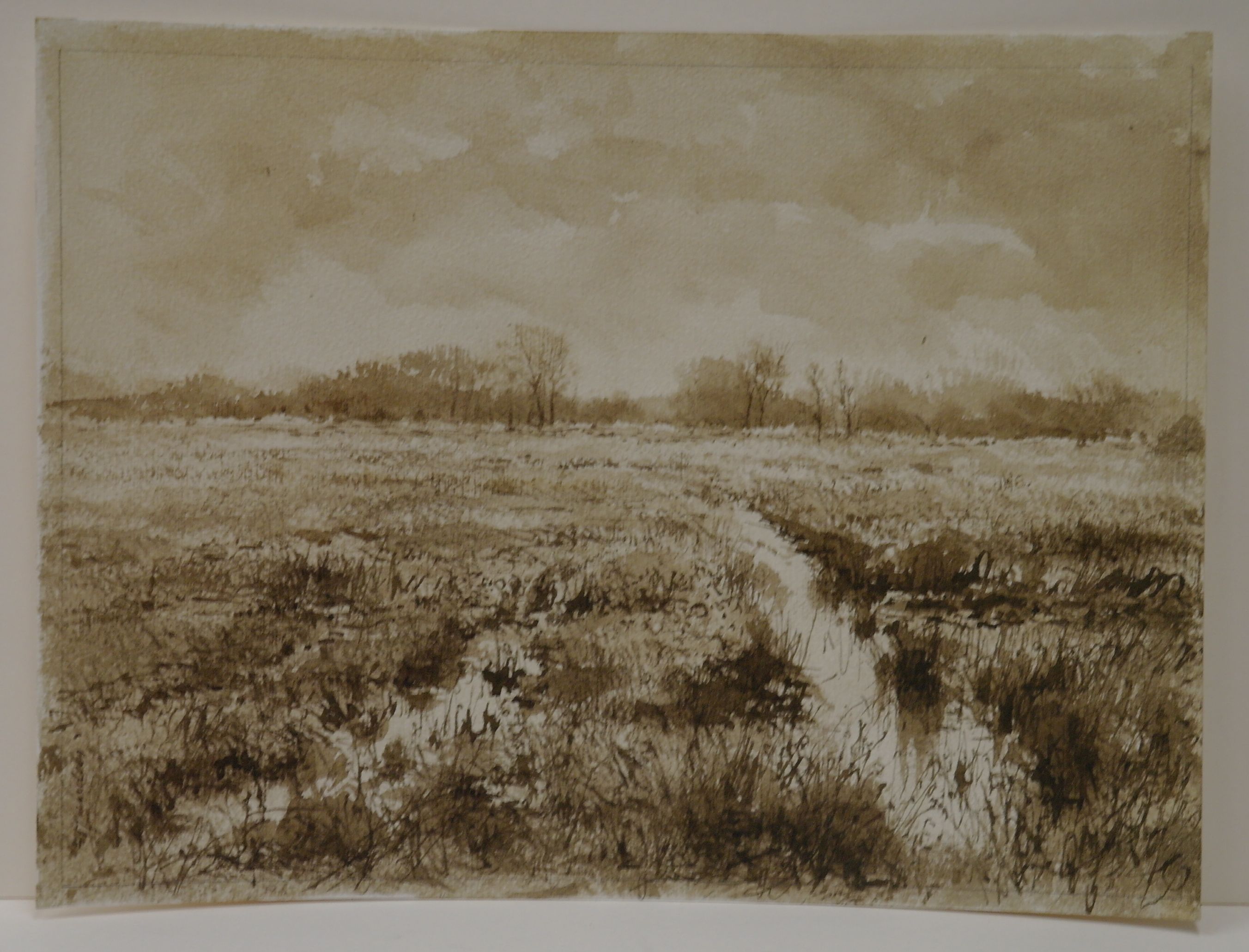 Peellandschap bij Ospel - 1982/1984, sepia/papier, 275 x 375 mm, gesigneerd l.o.: F. Manders