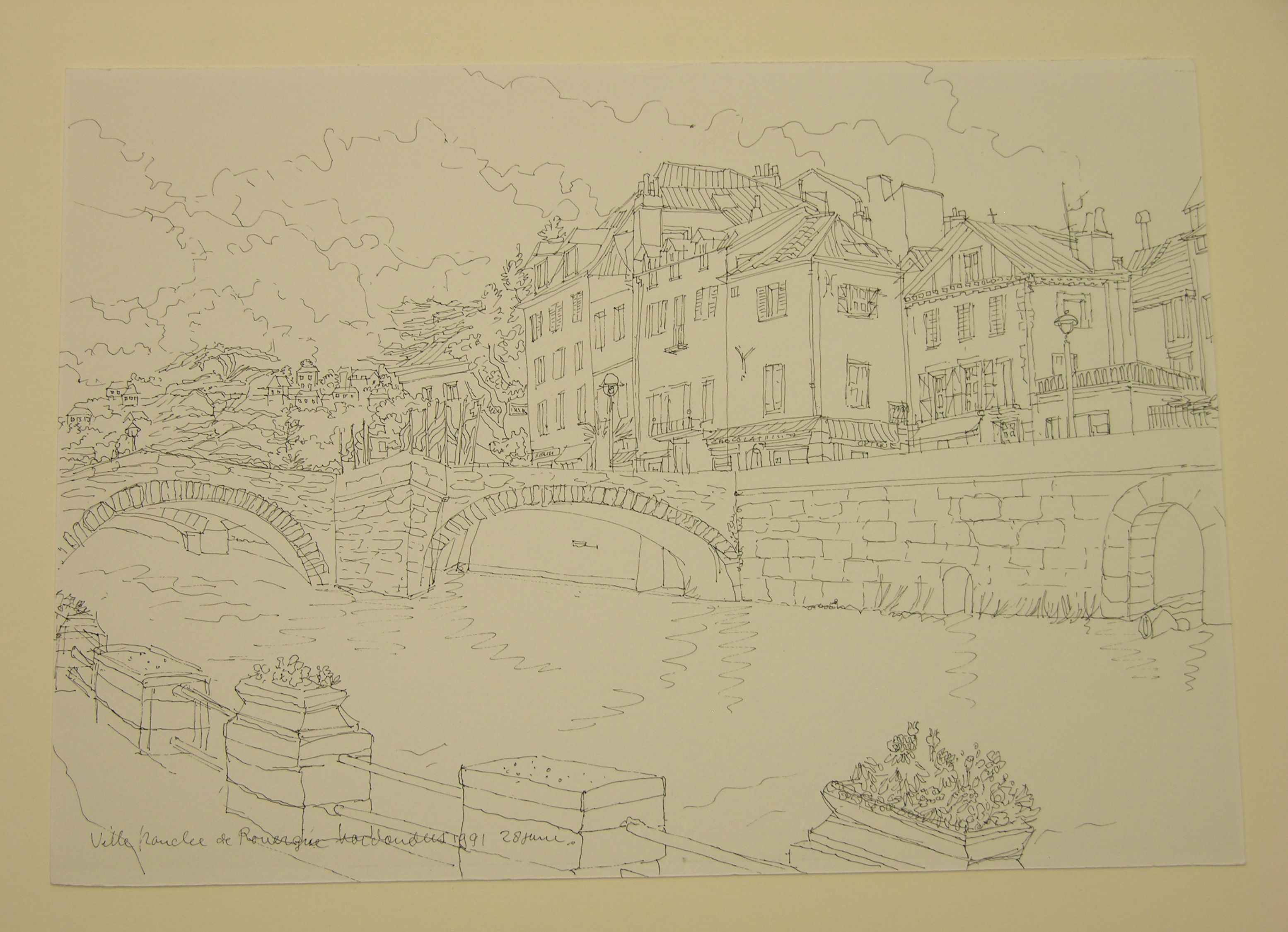 Ville Franche de Rouergue (Frankrijk) - 1991, oostindische inkt/papier, 205 x 295 mm, gelocaliseerd, gesigneerd en gedateerd l.o.: Ville Franche de Rouergue Har Sanders 1991 28 juni