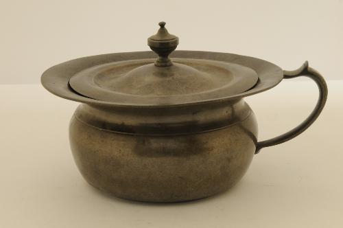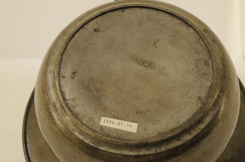 gemerkt op onderzijde: - PVDB - engel, leeuw, pijl - gekroonde X hierbij hoort deksel 1990.01.53 lit.: B. Dubbe, Tin en tinnegieters in Nederland, Lochem 1978, fig. 411 Brabants Heem, jg XXI (1969)