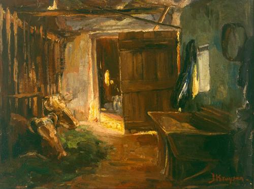 Stalinterieur - omstreeks 1920, olieverf/doek, 40 x 53,5 cm, gesigneerd r.o.: JKruysen