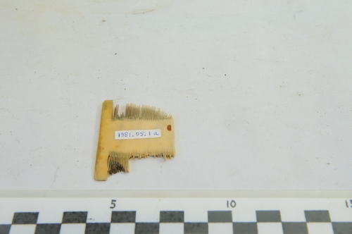 Fragment van een kam - 16e eeuw, materiaal: been, afmetingen: 4,5 x 3,5 cm, herkomst: afkomstig uit een afvalput in Vlissingen