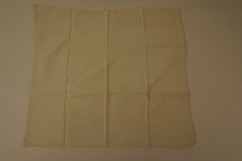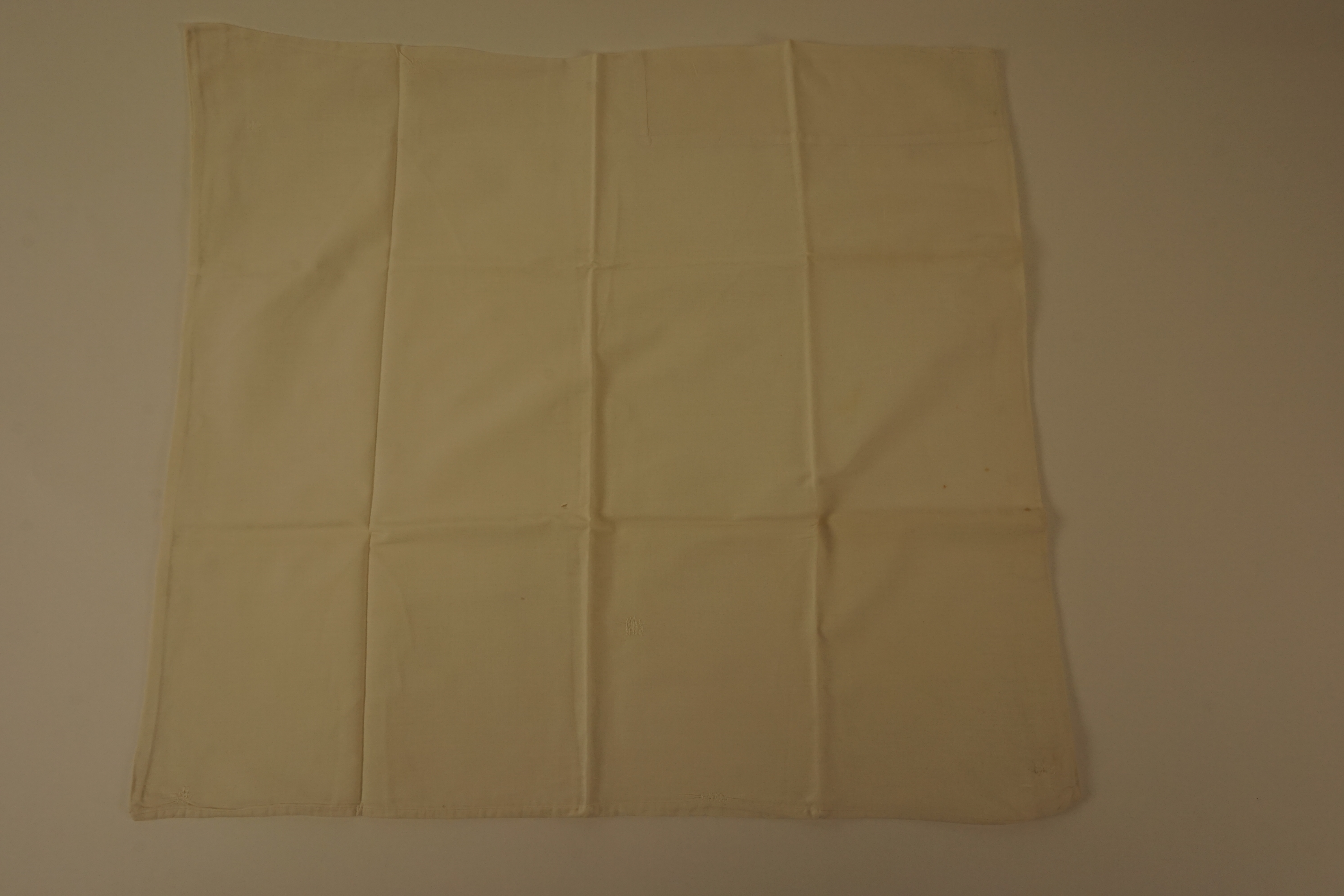 Sloop, materiaal: katoen, kleur: wit, lengte 61 cm, breedte 66,5 cm, knoopsluiting met vijf linnen knopen, waarvan er 3 beschadigd zij en 1 kwijt is, handgemaakte knoopsgaten, overslagsluiting, machinale stoppen, versteld: nieuw stuk aangezet textilia afkomstig van mevrouw Sweegers-Maas, gehuwd in 1891, dochter Wilhelmina Sweegers