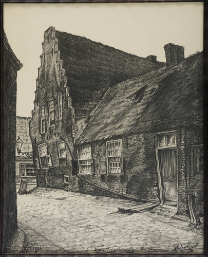 gemeten exclusief lijst lijstmaat: 65,8 x 53 cm gesigneerd en gedateerd r.o.: PPeeters 1926 geannoteerd en gedateerd m.o.: litho 4/20 't Pannenhuis Eindhoven gemonogrammeerd en gedateerd l.o.: PP 1926 op a.z.: Eigendom van J.W.J. Weijl Amsterdam in lijst achter glas Het Pannenhuis lag op de hoek Hoogstraat - Catharinastraat te Eindhoven.