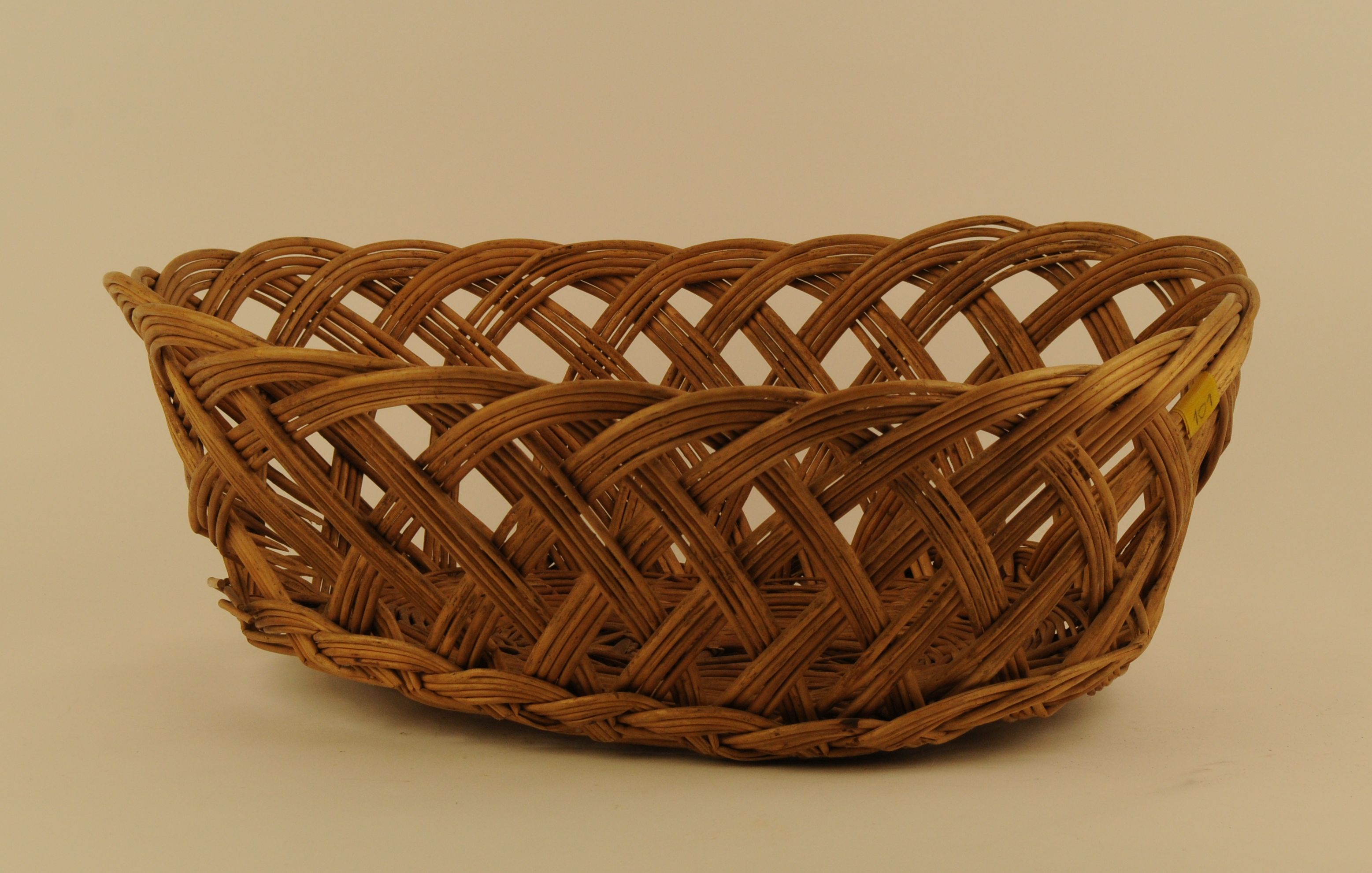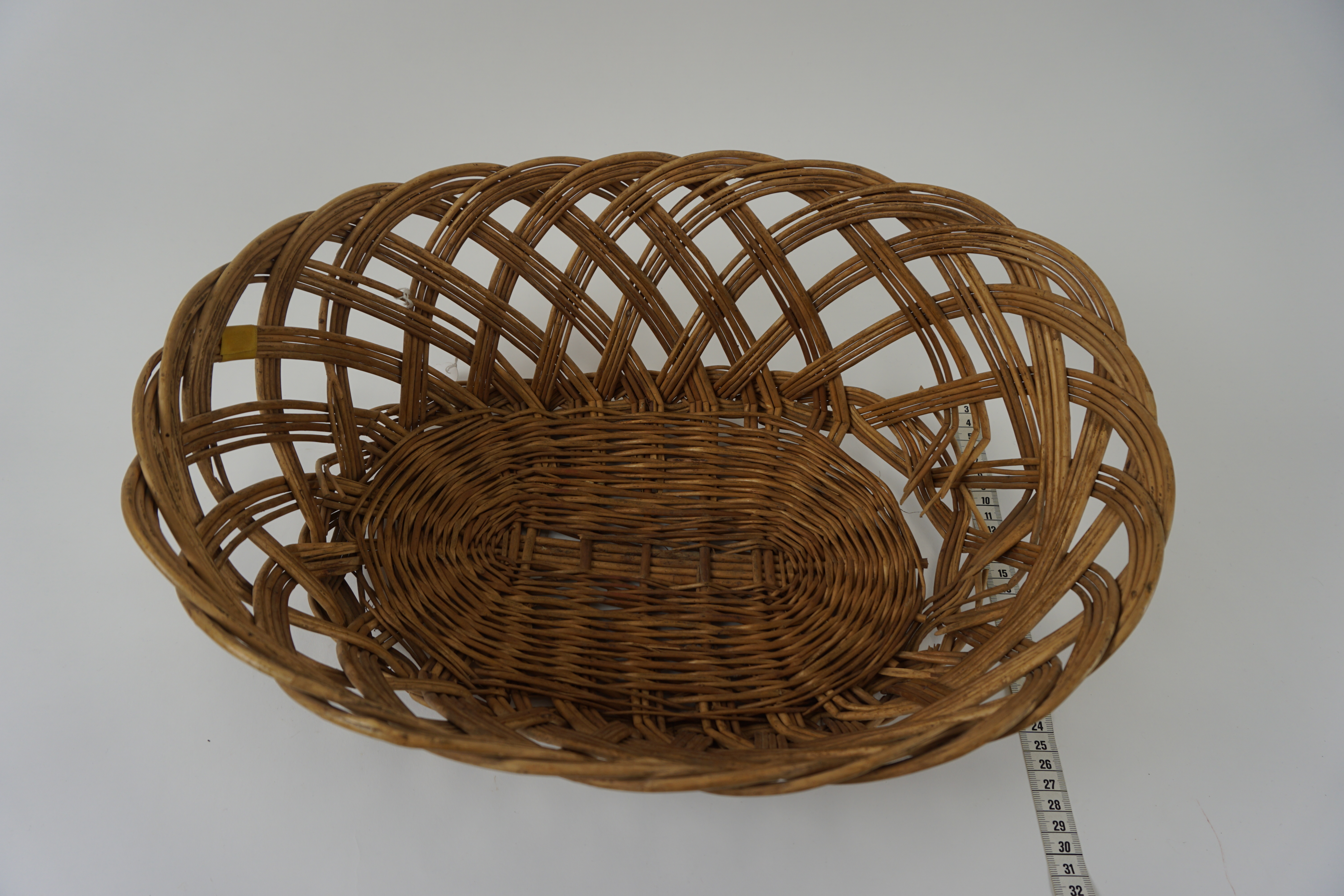 Gevlochten mand, materiaal: riet, kleur: geelbruin, twee handgrepen, 43 x 16 x 32,5 cm (diam)