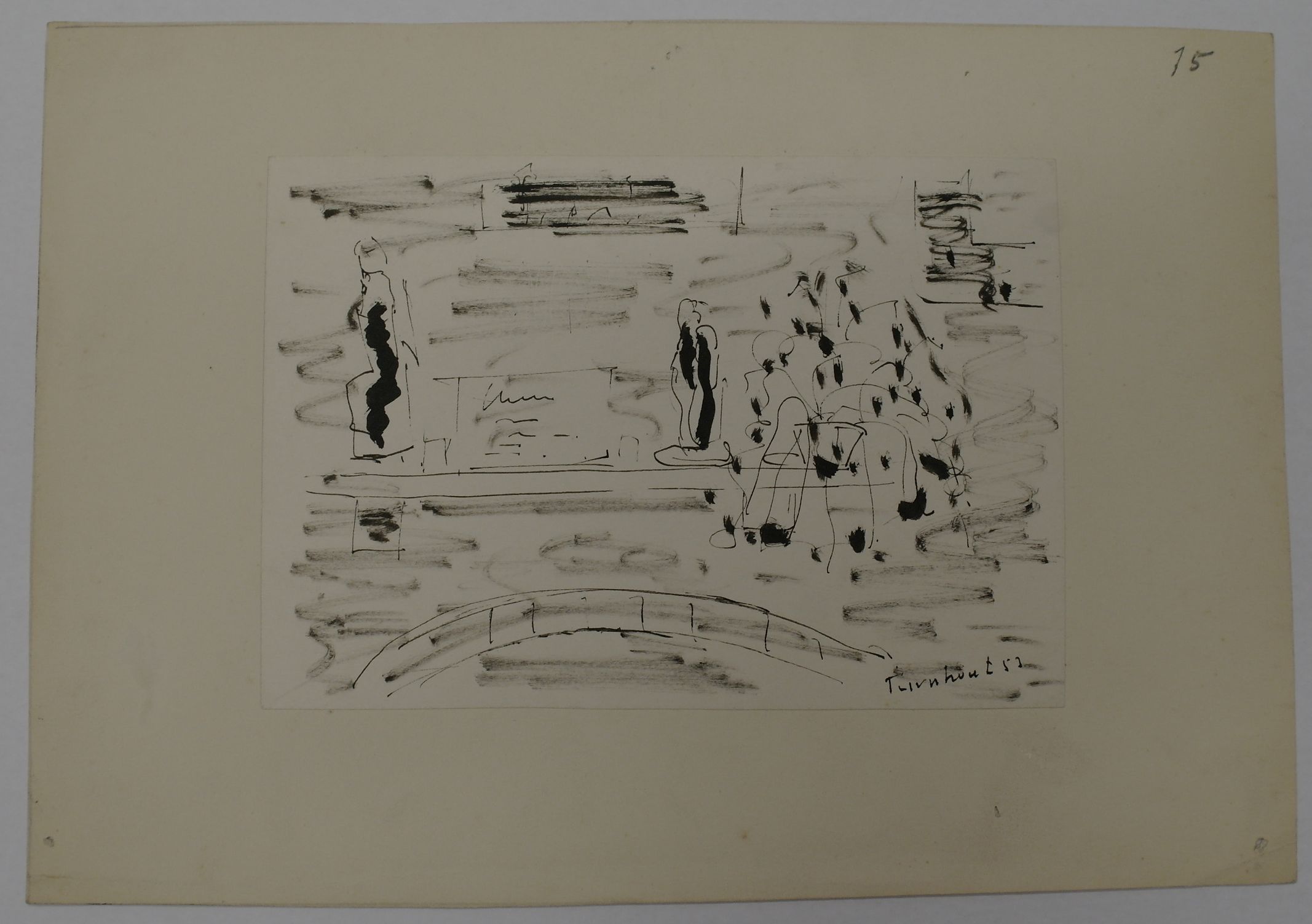 gesigneerd en gedateerd r.o.: Turnhout 53 op papieren ondergrond gekleefd