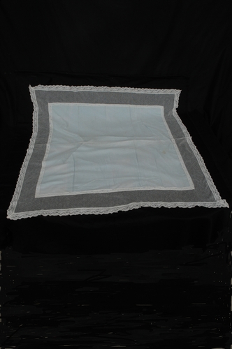 kleur: creme/bleu grove tule, rondom afgezet met machinale kant