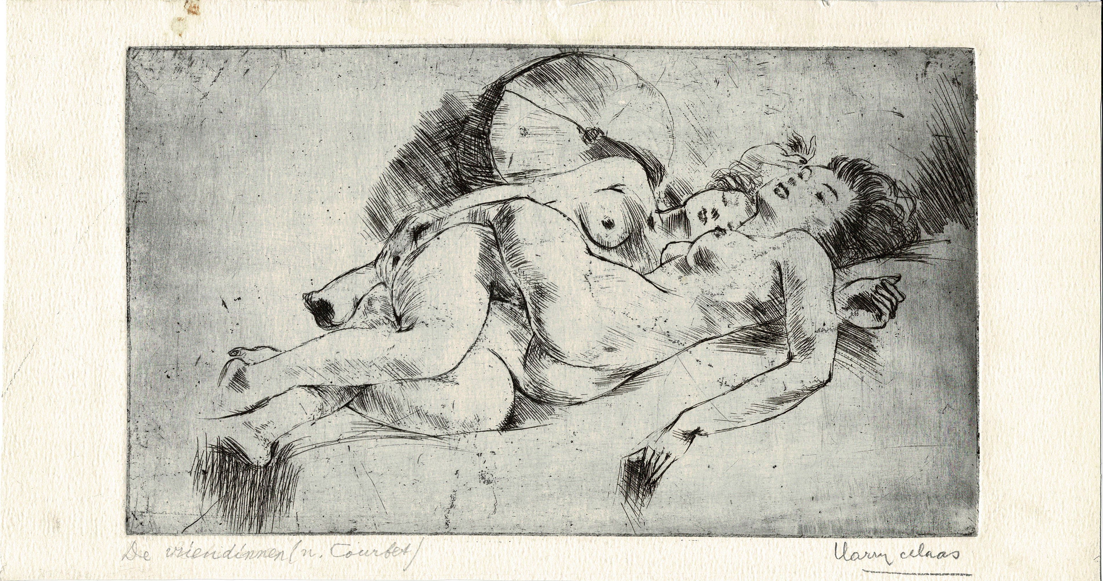 De vriendinnen (naar Gustave Courbet) - z.j., ets/papier, 144 x 249 mm, gesigneerd onder plaat in potlood r.o.: Harry Maas, geannoteerd onder plaat in potlood l.o.: De vriendinnen (n. Courbet), HN-nr M1-117