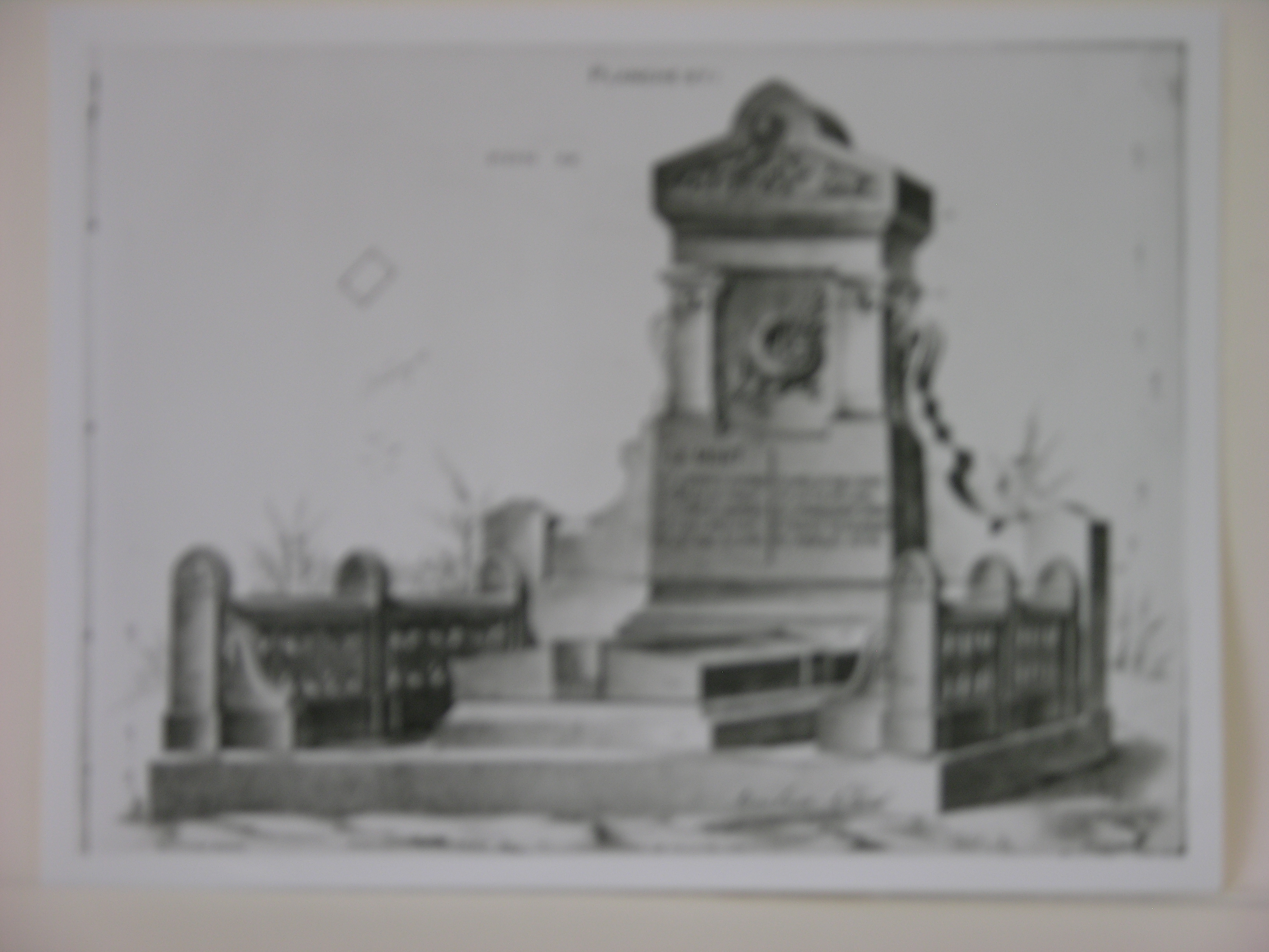 foto van bladzijde uit negentiende-eeuwse franstalige prospectus voor grafstenen en zerken (Planche 871) van de firma Rombaux-Roland (?)