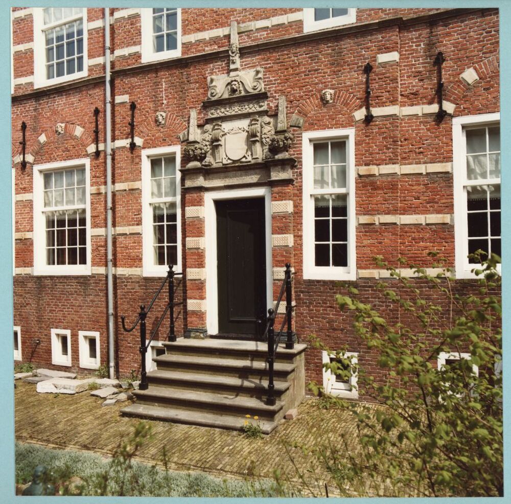 Eén van 6 zwart-wit foto's en 1 kleurenfoto van het Admiraliteitshuis in Dokkum