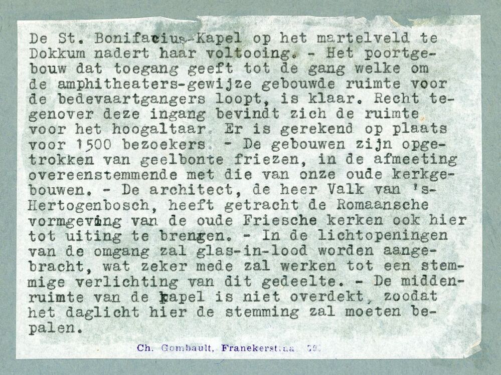 Eén van 7 zwart-wit foto's van de Bonifatiuskapel in Dokkum