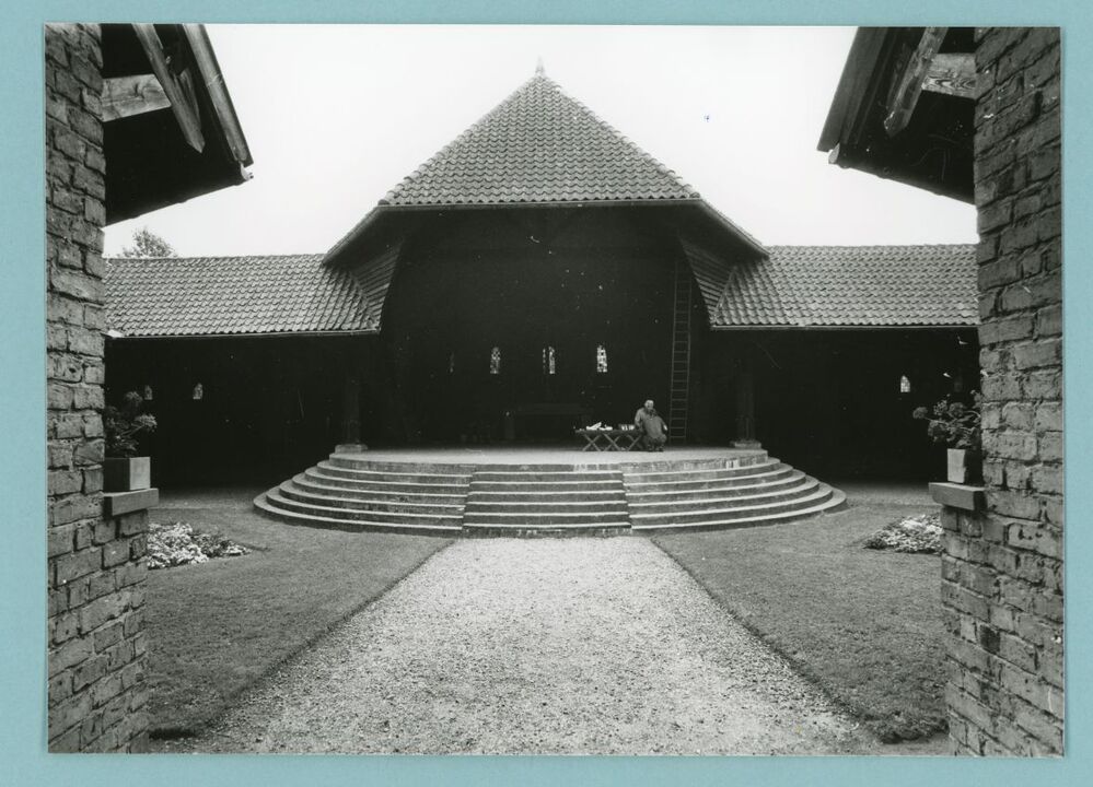 Eén van 7 zwart-wit foto's van de Bonifatiuskapel in Dokkum
