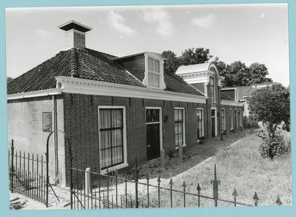 Gezicht op de binnentuin en enkele huisjes van het gasthuis in Dokkum