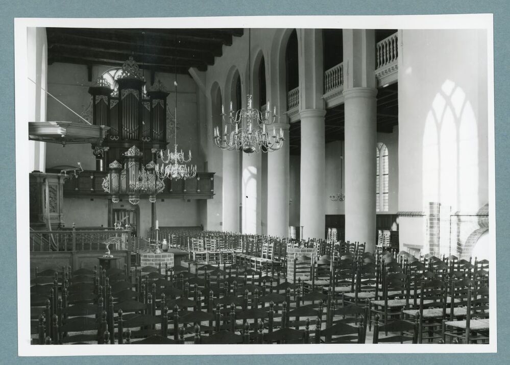 Eén van 33 zwart-wit foto's van de sint Maartenskerk in Dokkum