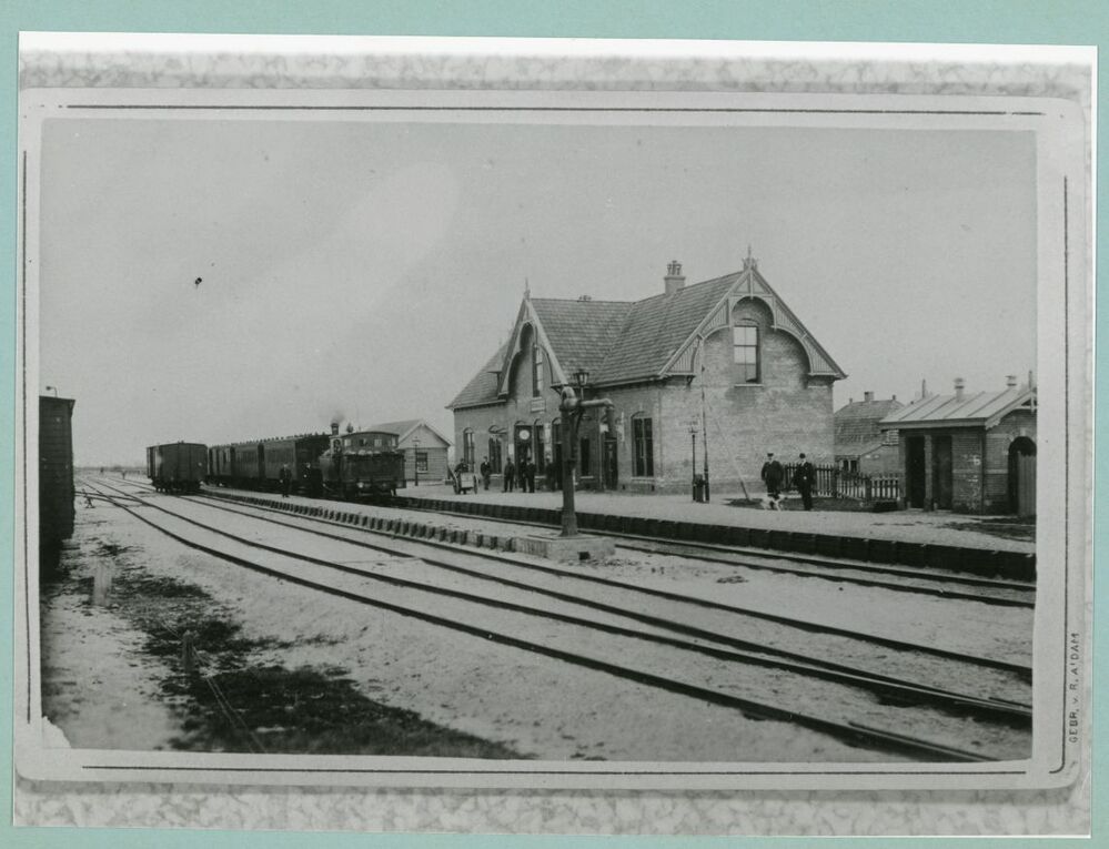 Eén van 8 zwart-wit foto's van het station in Dokkum