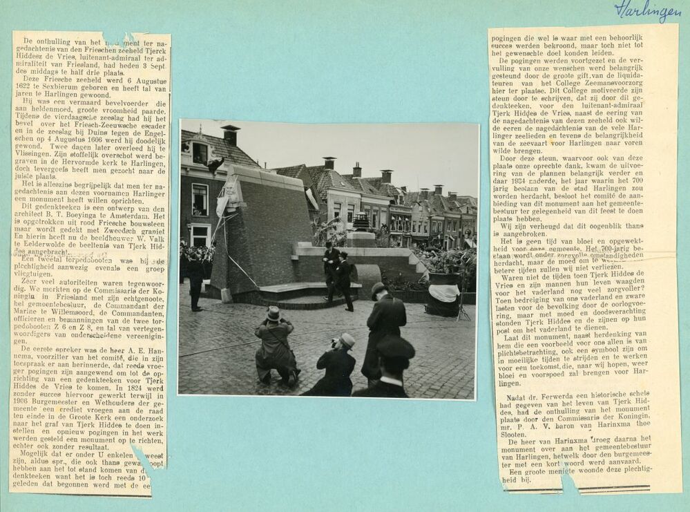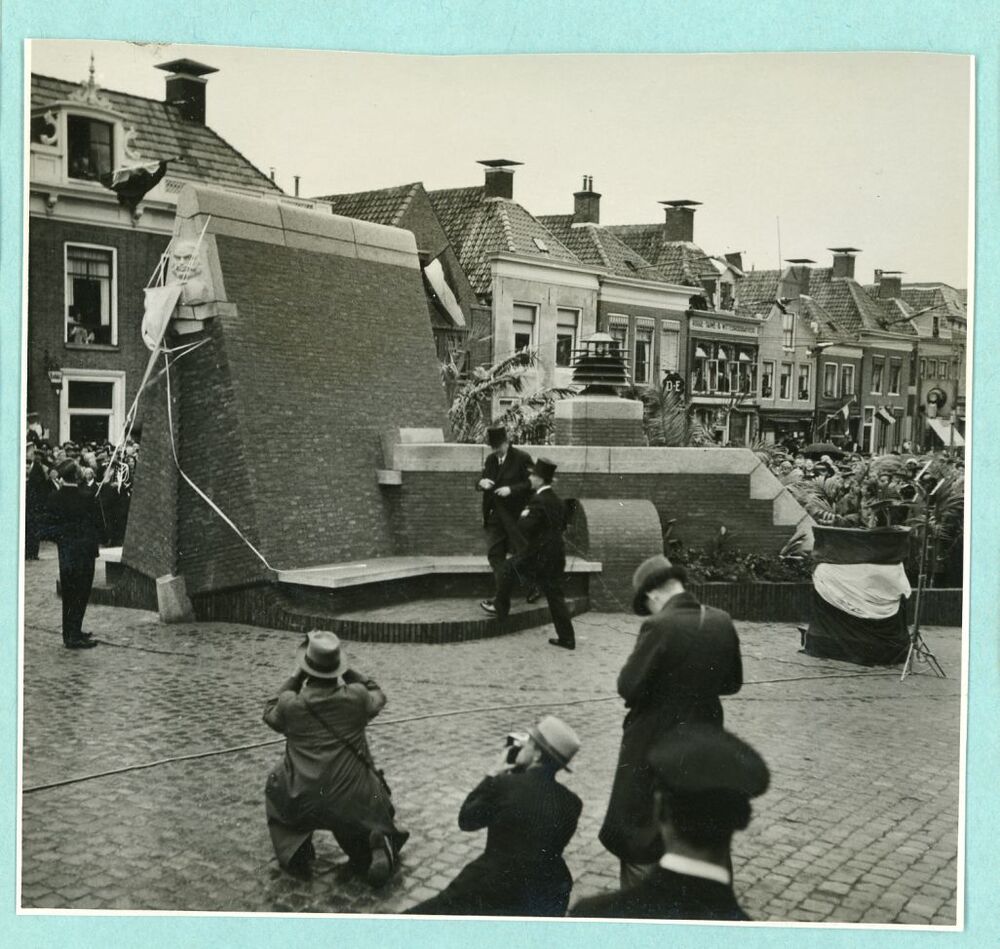 Eén van 6 zwart-wit foto's van monumenten in Harlingen