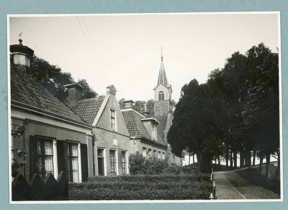 Eén van 2 zwart-wit foto's van de R.K.-kerk in Sloten
