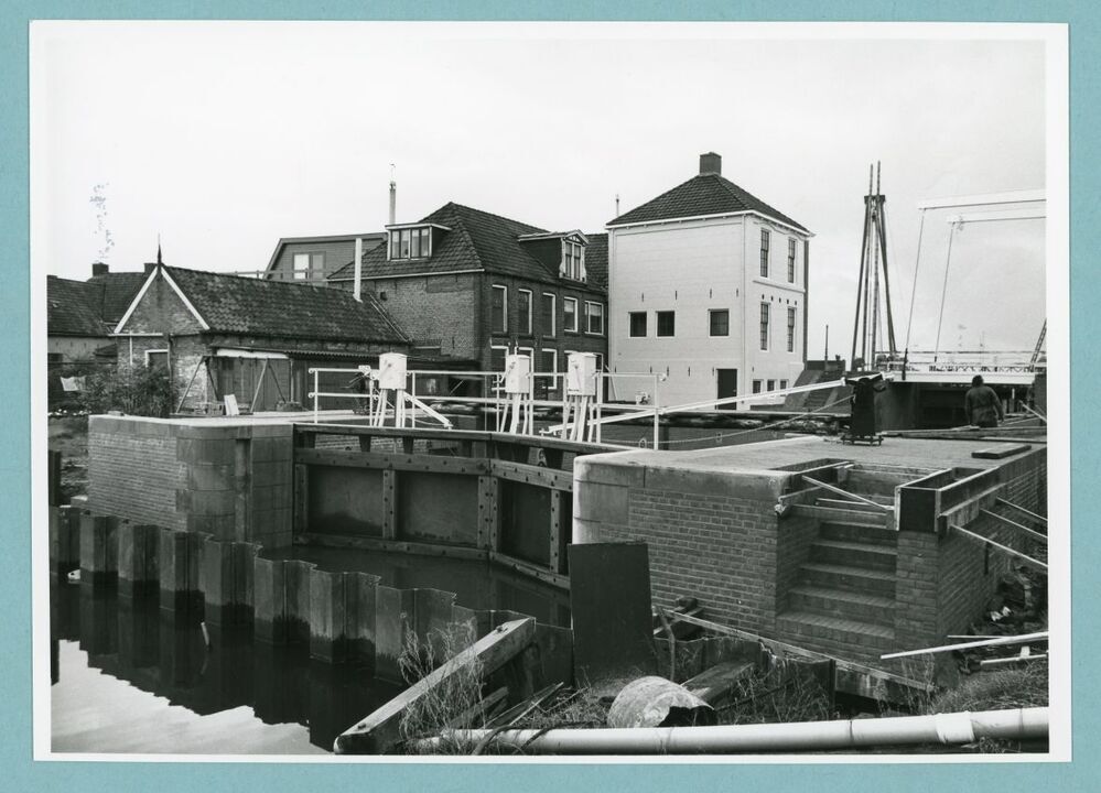 Eén van 19 zwart-wit foto's van de sluis van Stavoren