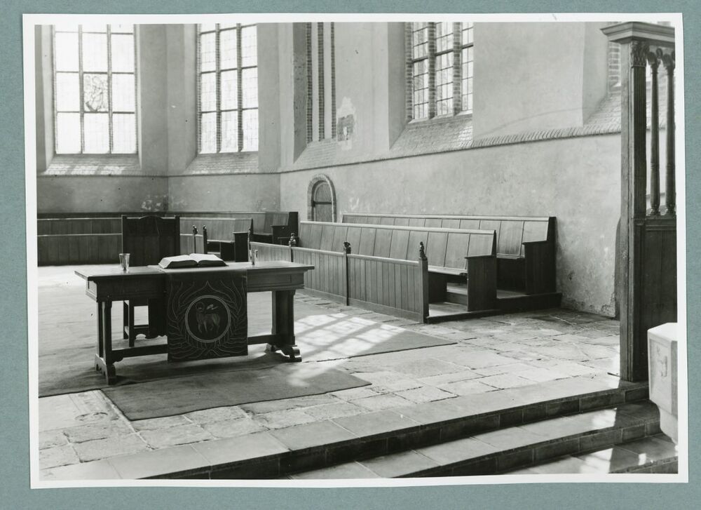 Eén van 52 zwart-wit foto's van de Nederlands-Hervormde kerk in Workum