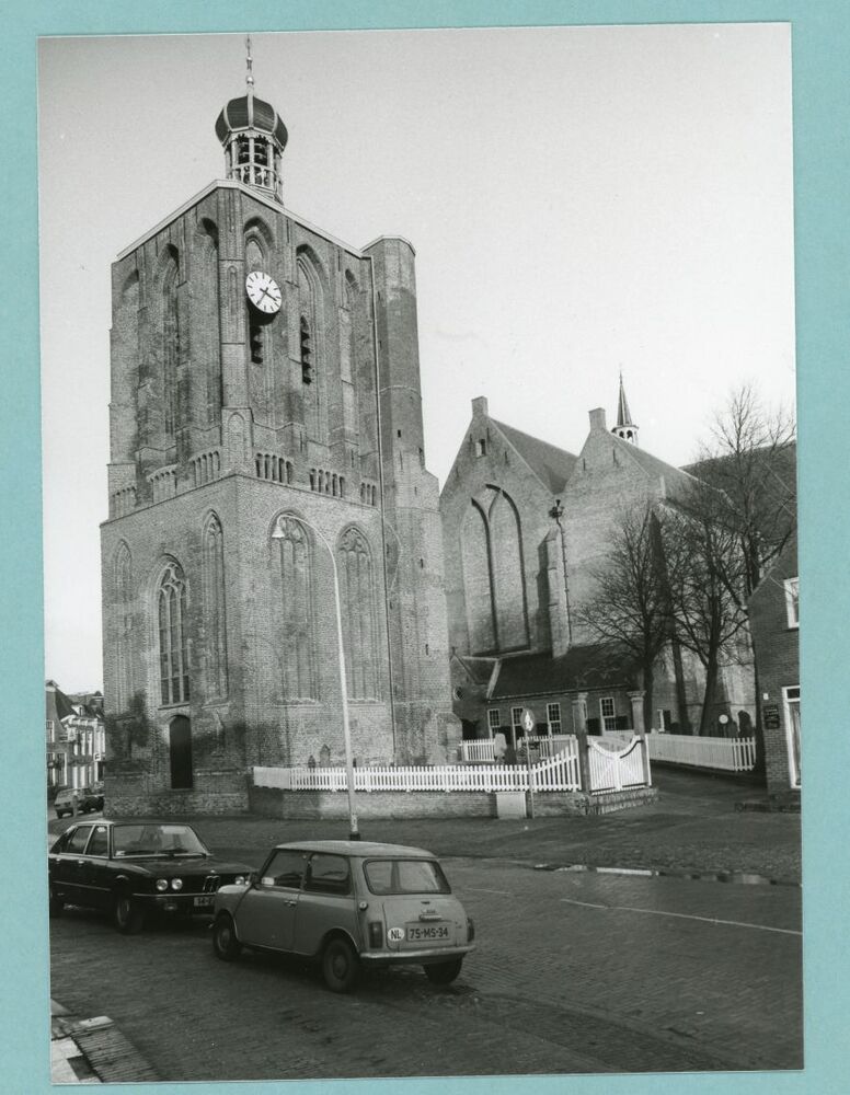 Eén van 52 zwart-wit foto's van de Nederlands-Hervormde kerk in Workum