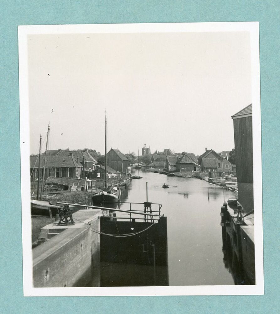 Gezicht in Workum, één van 6 zwart-wit foto's van de sluis in Workum