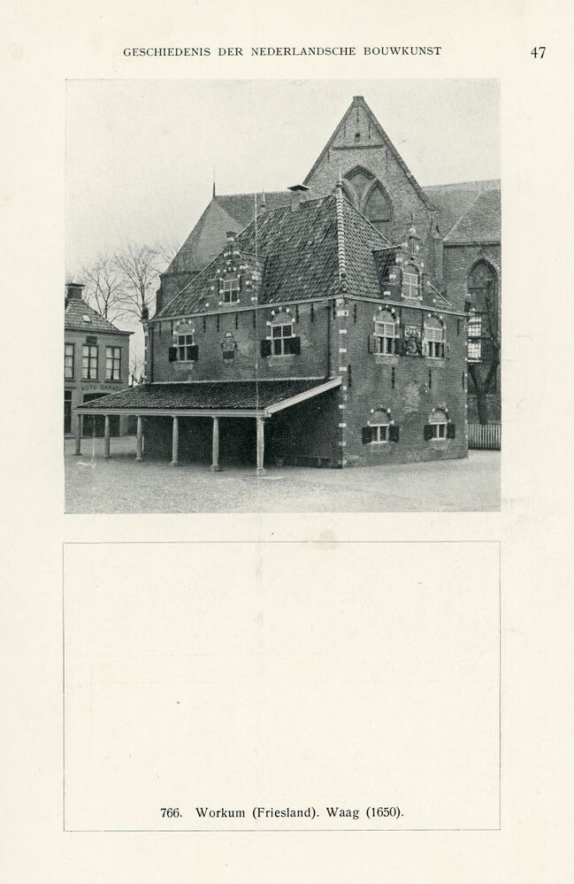 Eén van 5 zwart-wit foto's en 1 kleurenfoto van de waag in Workum