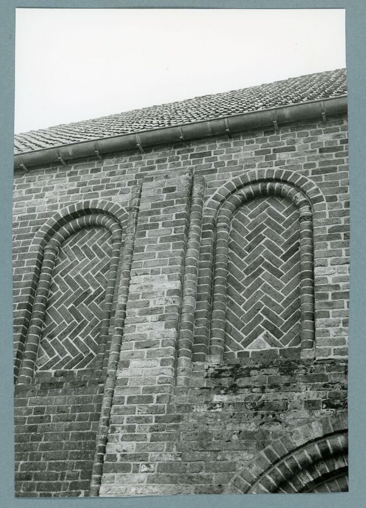 Eén van 19 zwart-wit foto's van de kerk te Hantumhuizen