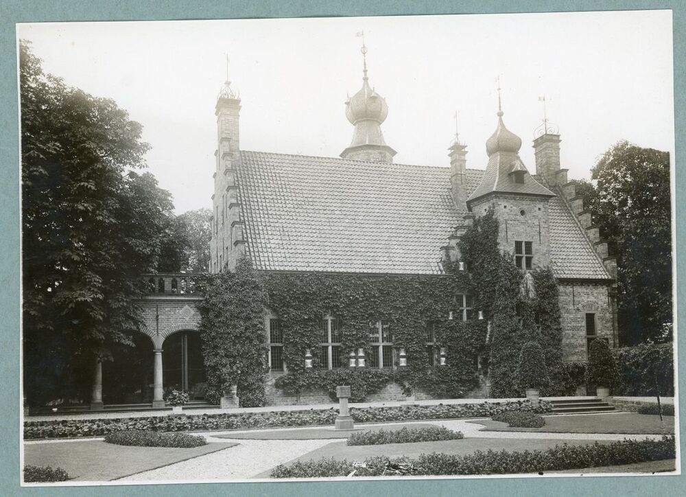 Zicht vanaf de tuin op het Poptaslot in Marssum