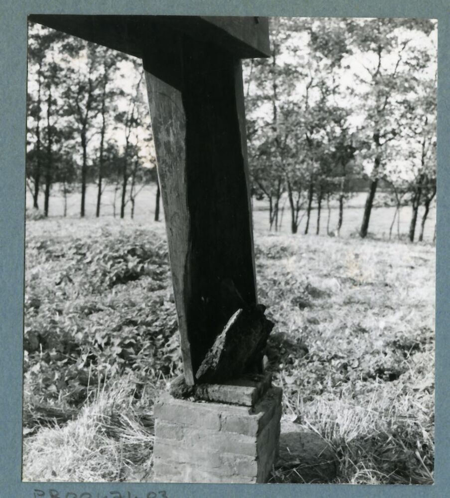 Eén van 6 zwart-wit foto's van de klokkenstoel te Ouwster-Nijega