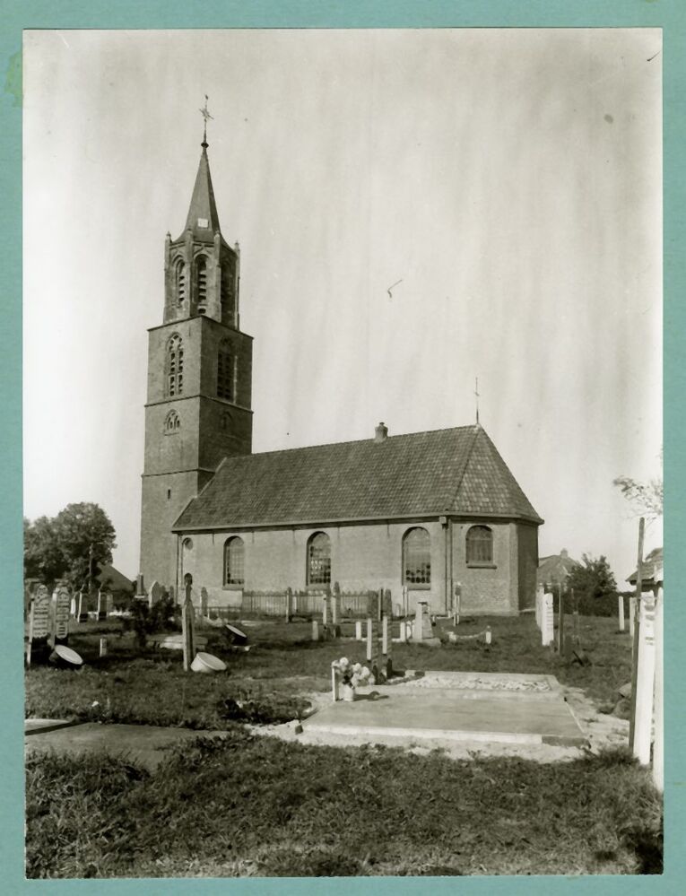 Zwart-wit foto van een kerk te Peperga