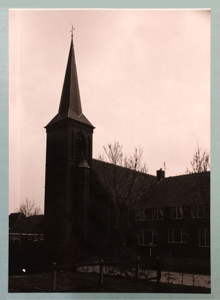 Zwart-wit foto van een kerk te Roodkerk