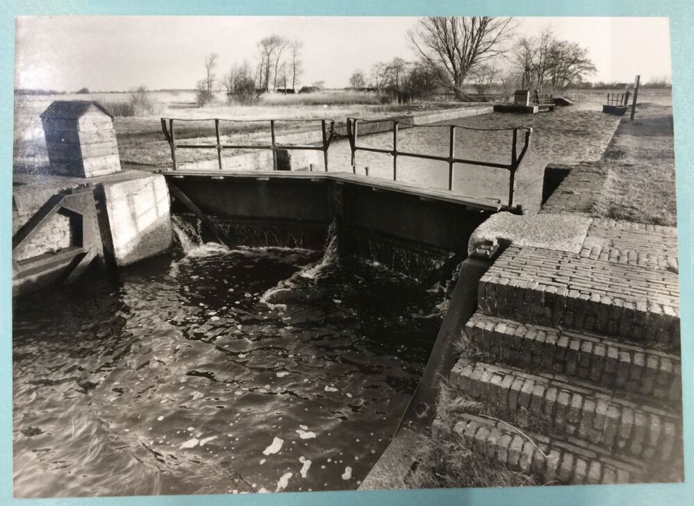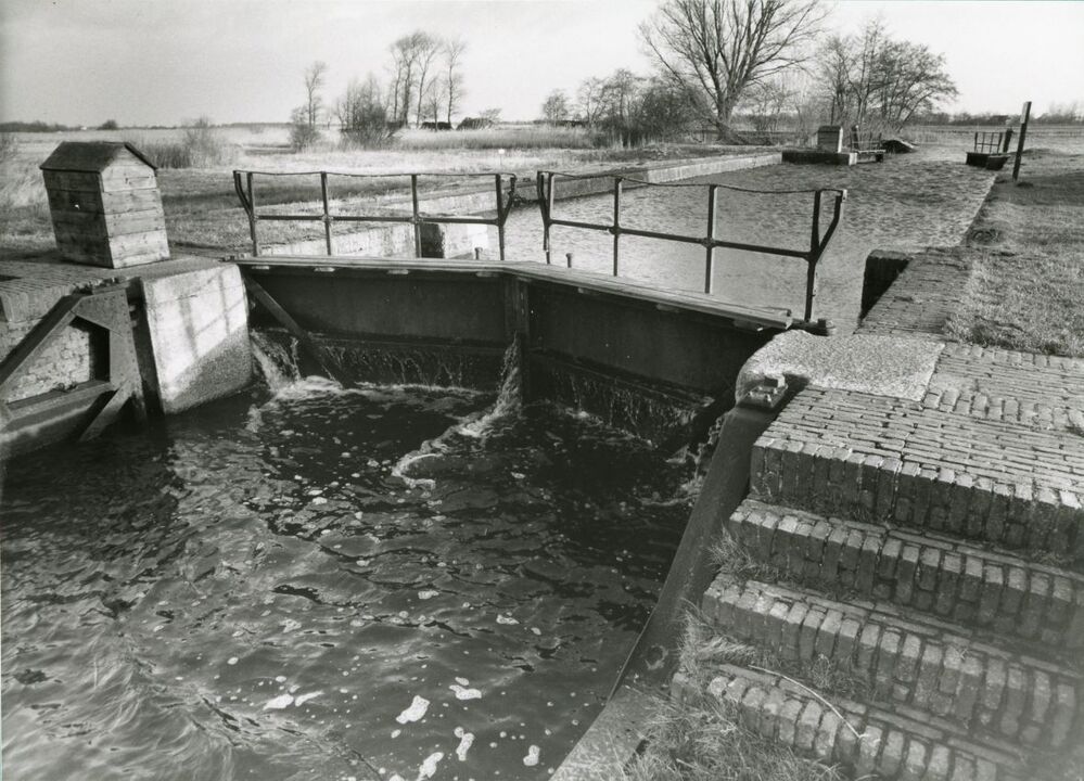 Zwart-wit foto van het oude sluisje te Valom