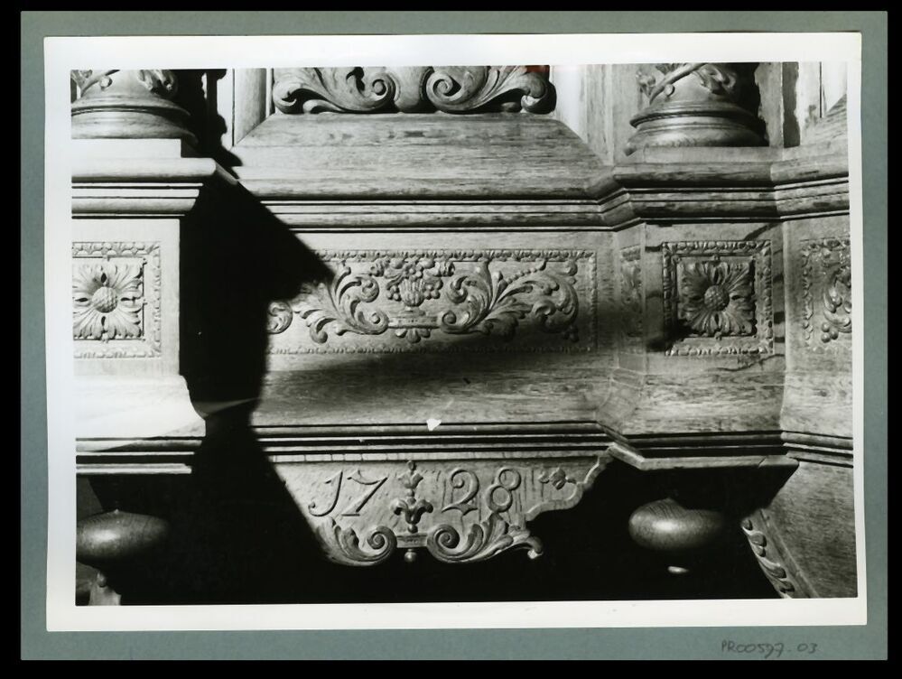 Eén van 23 zwart-wit foto's van kerk van Wijnaldum en het interieur