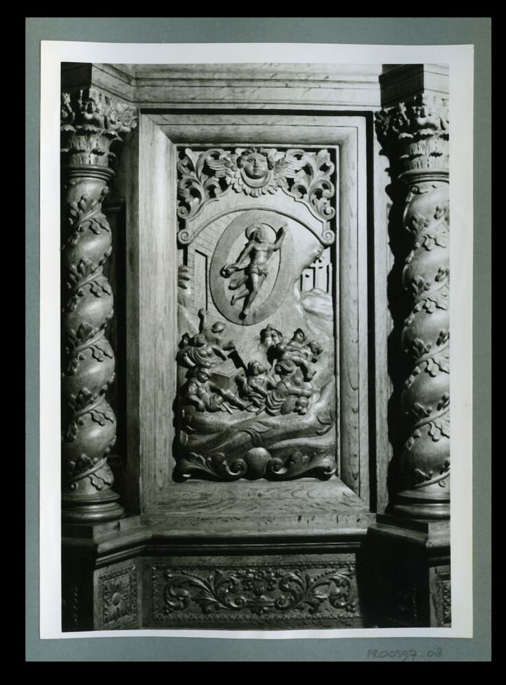 Eén van 23 zwart-wit foto's van kerk van Wijnaldum en het interieur