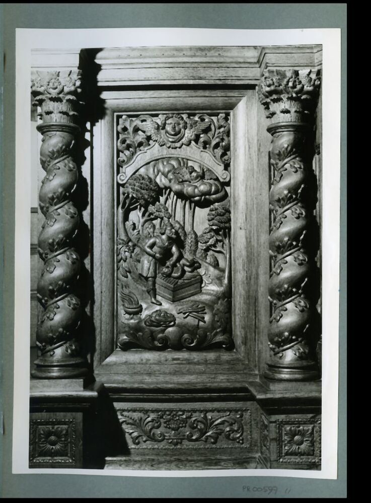 Eén van 23 zwart-wit foto's van kerk van Wijnaldum en het interieur